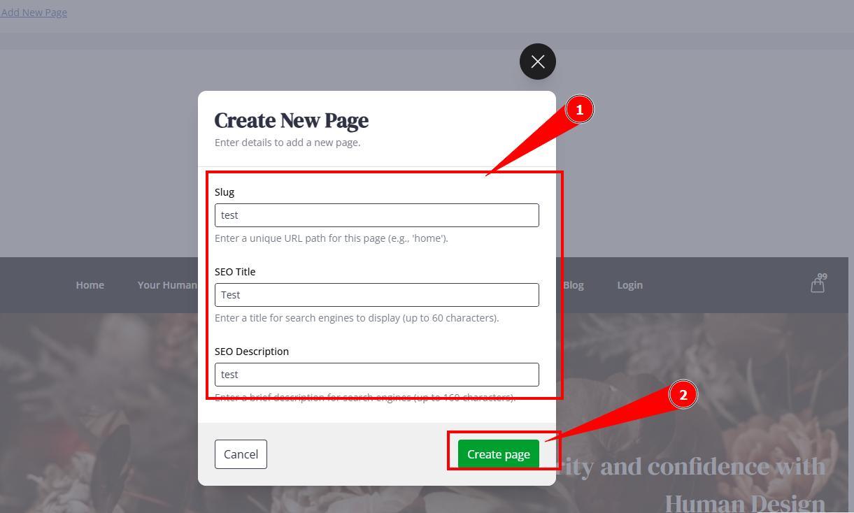 IMPORTANT: page will not be automatically added to the the Menu. To add page to menu follow THIS guide.