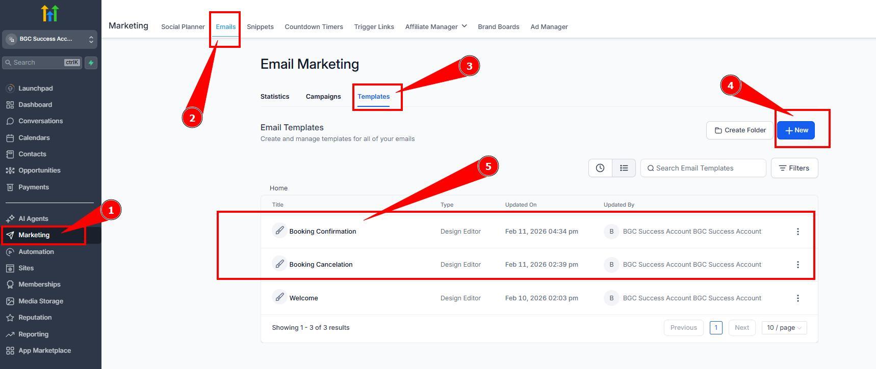 – Assigning created email templates to the email automations