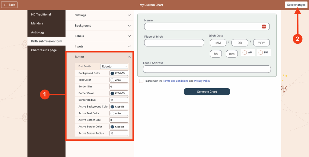 2. Click on ‘Birth submission form’ and then click on ‘Button’ to expand the menu