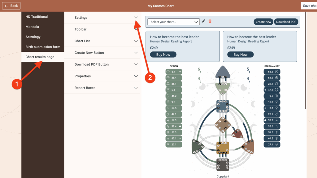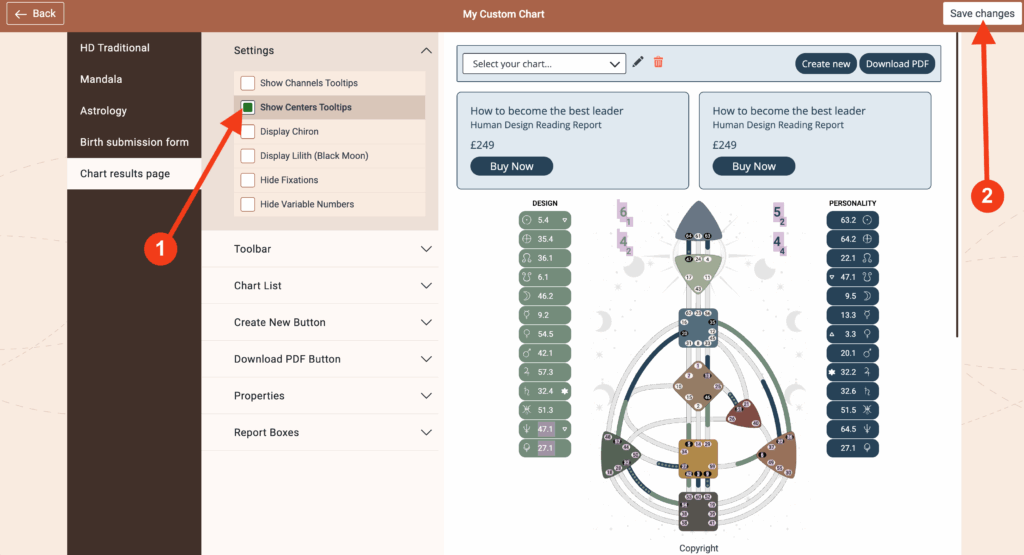 To display the tooltips of the centers in the Human Design Chart, proceed as follows: