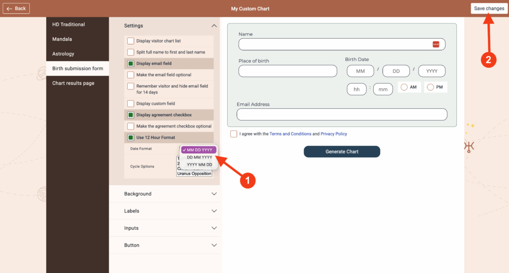 4. Choose your date format from the drop down menu and then click ‘Save changes’
