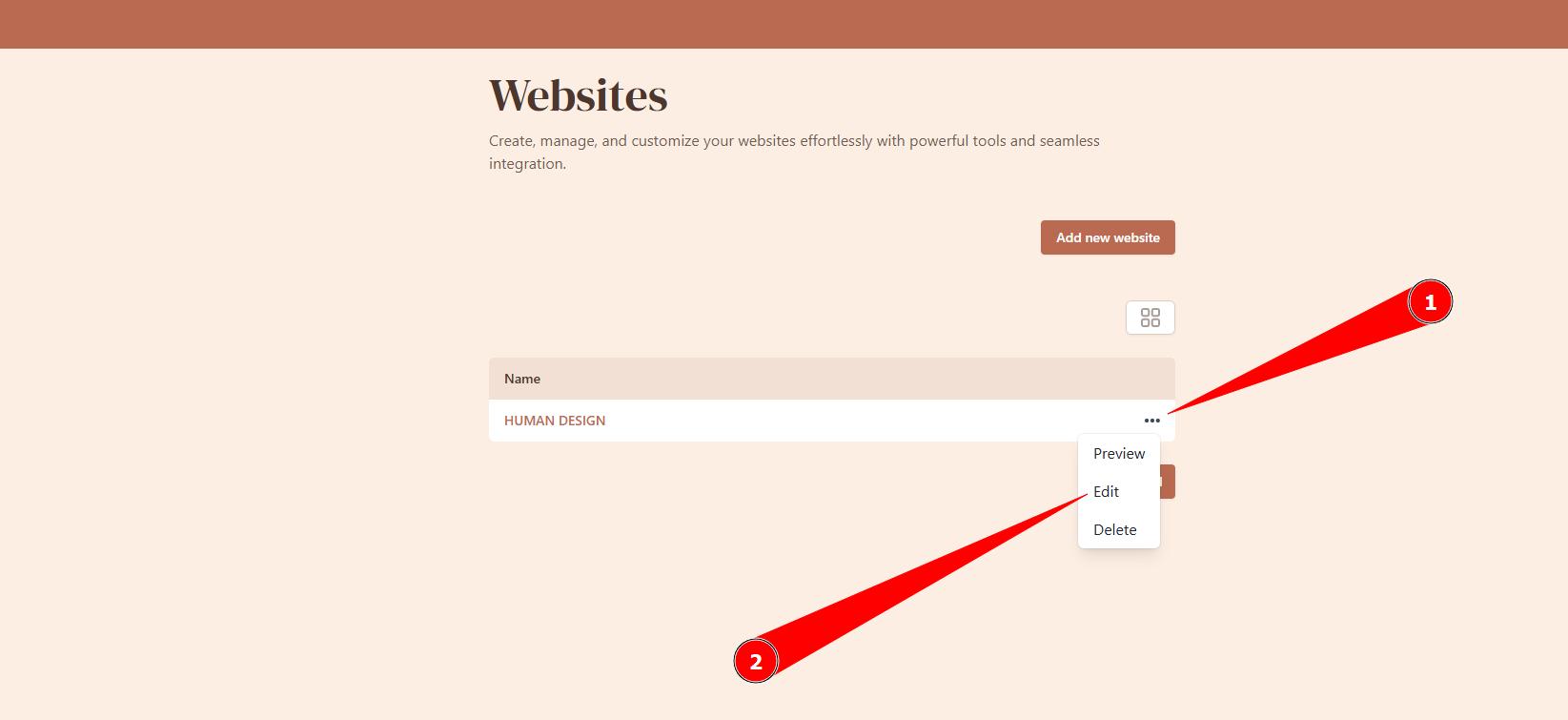 2. Hover over 3 little dots next to the website title and select Edit option.