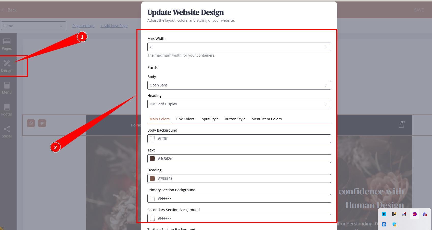 1. Centralized settings at the Design dashboard. These settings will apply to all website throughout all sections.
