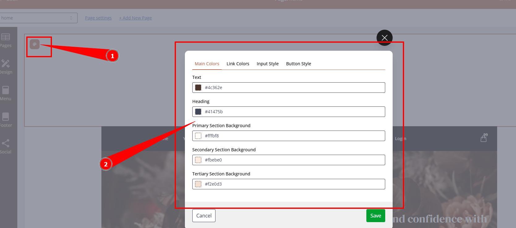 Editing websites branding: colors and fonts