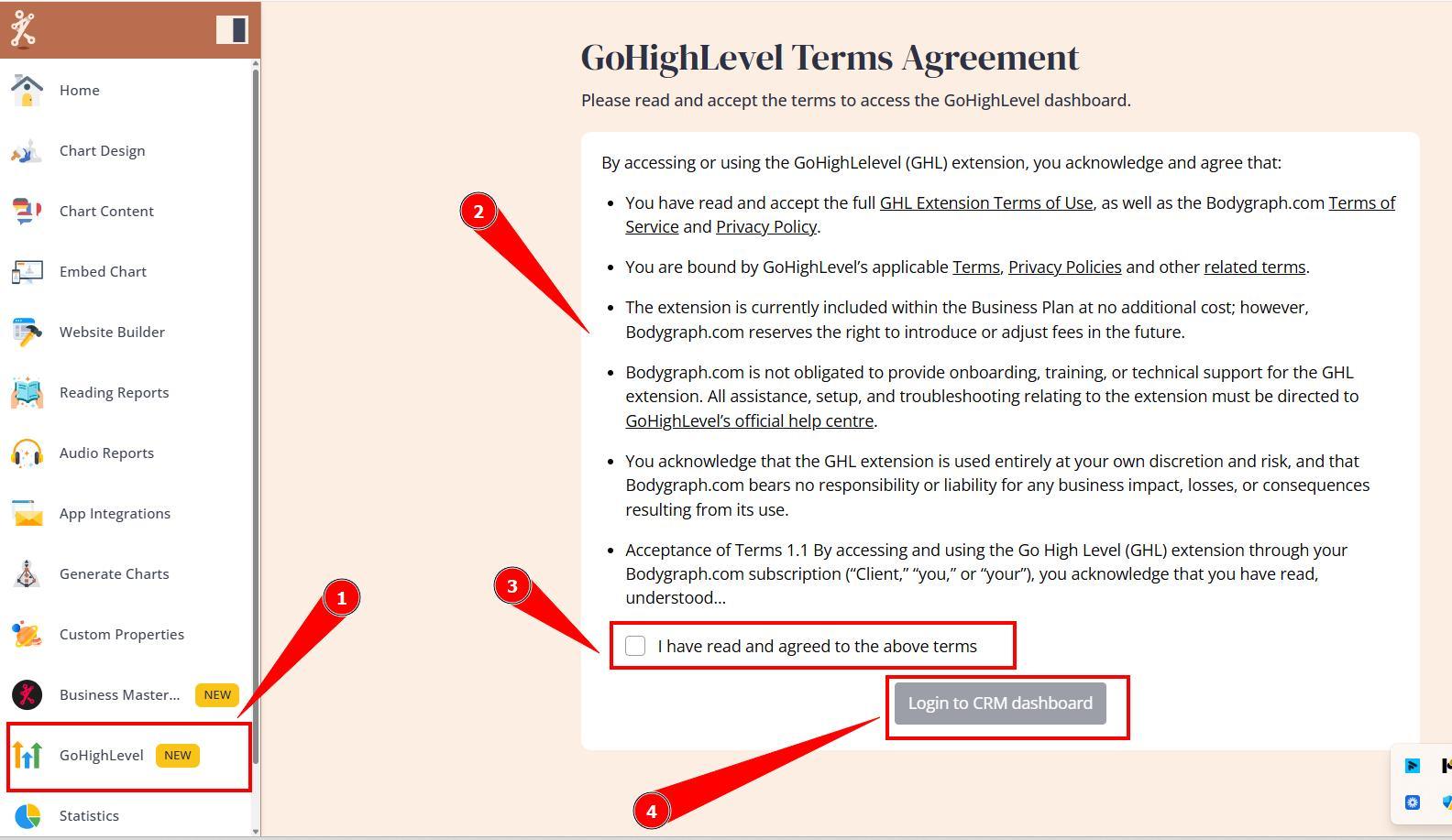 To access the GoHighLevel Extension: