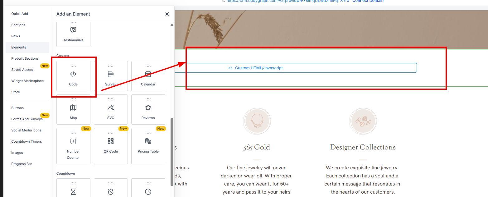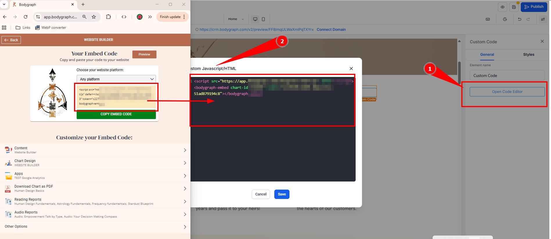 Paste your Bodygraph embed code into the element settings (right panel)