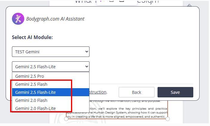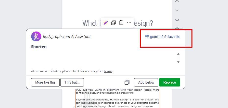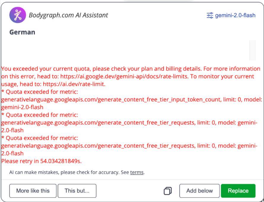 Please note that Bodygraph is not responsible for the accuracy, interpretation, or performance of Gemini AI outputs. For more information, refer to the Bodygraph AI usage terms.