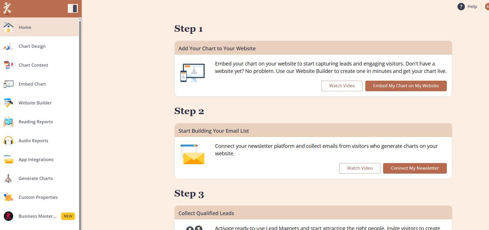 1. Inside your Bodygraph.com dashboard, go to the App integrations section.