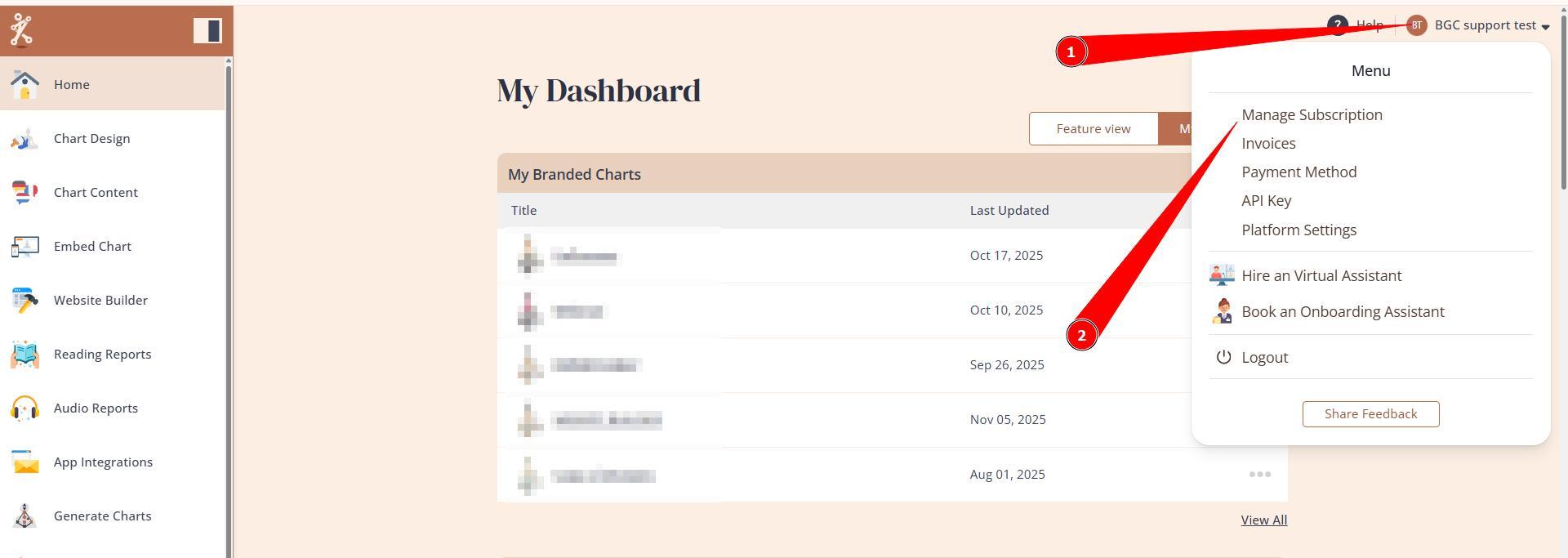 2.Press on your profile icon at the top right corner and select Manage Subscriptions.