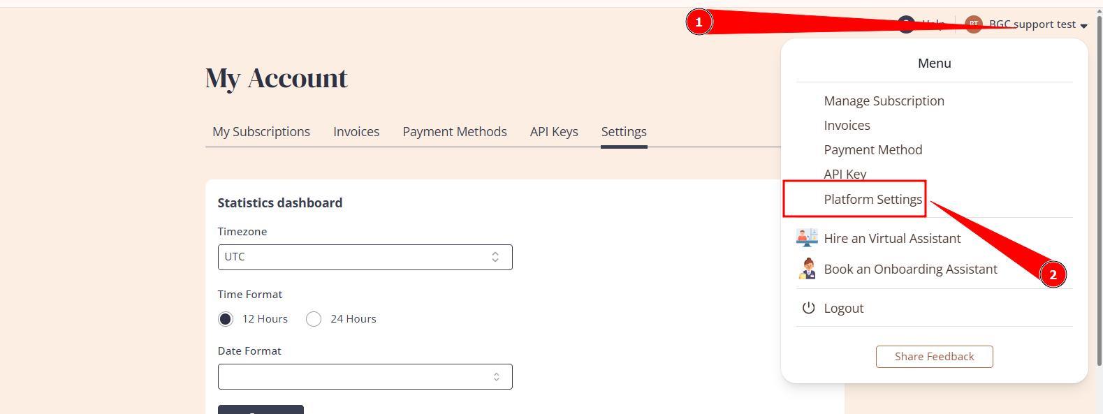 2.Press your profile icon at the top right corner and select Platform Settings.