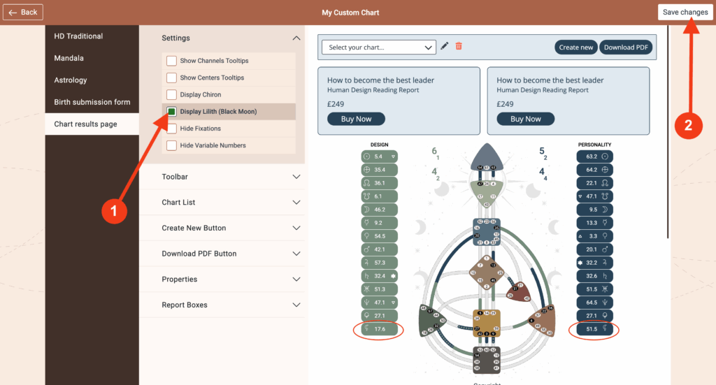 To display the planet Lilith in the Human Design Chart on your website, proceed as follows:
