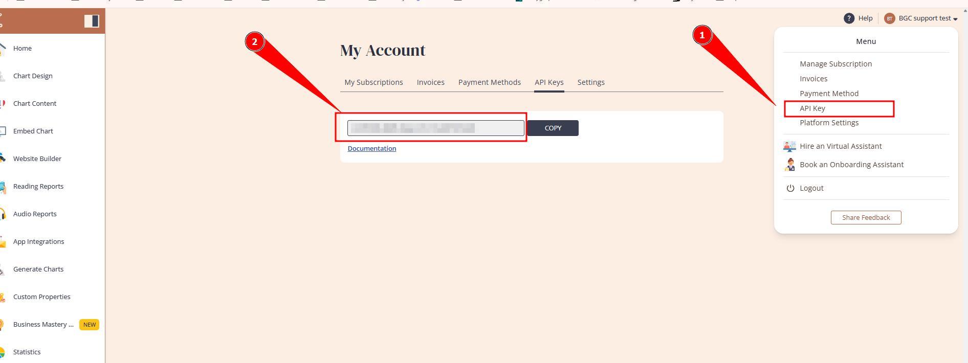 To get your unique API key first of all you need to sign up for Bodygraph.com free trial and create an account. Then please follow the steps listed below:
