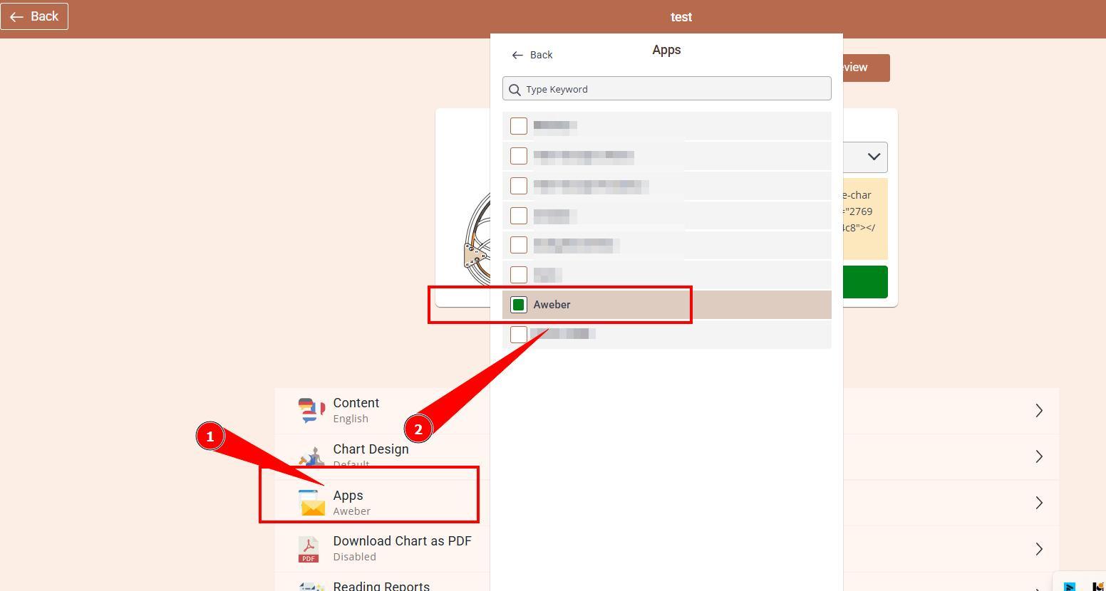 10.Go back to Bodygraph account, then to Embed chart, select the embed code that you are using/will use on your website and enable AW app.