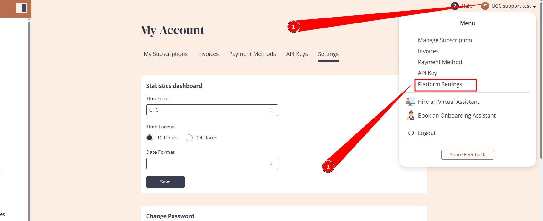 3.Press you profile icon on the top right corner and select Platform Settings.