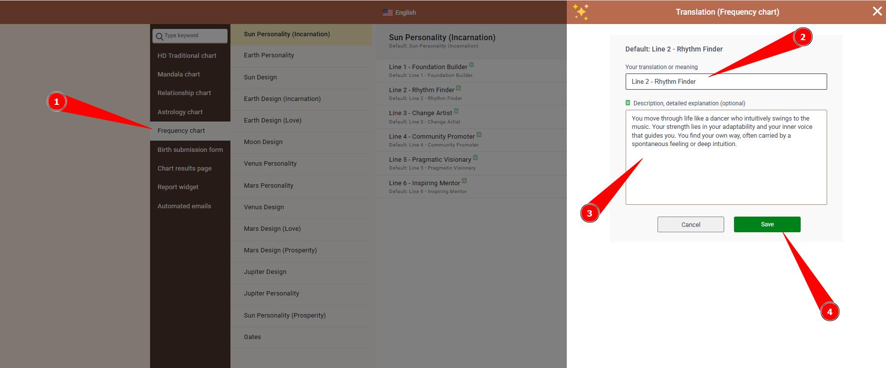 1. Go to Chart Content tool and select the language that is assigned to your Frequency report.
