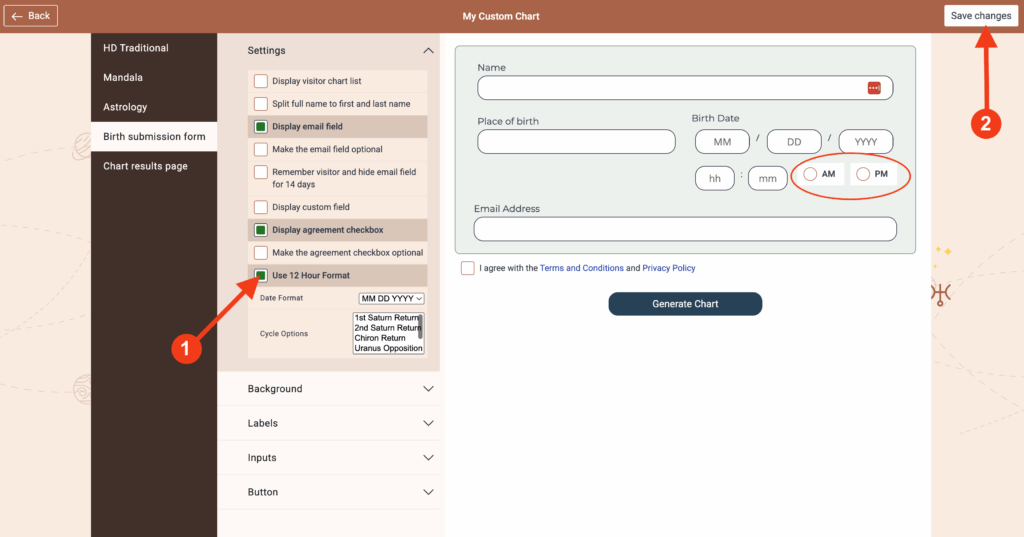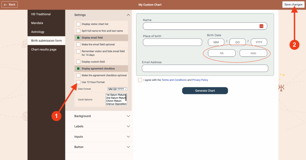 3. Click/Unclick on ‘Use 12 Hour Format’ and then click on ‘Save Changes’