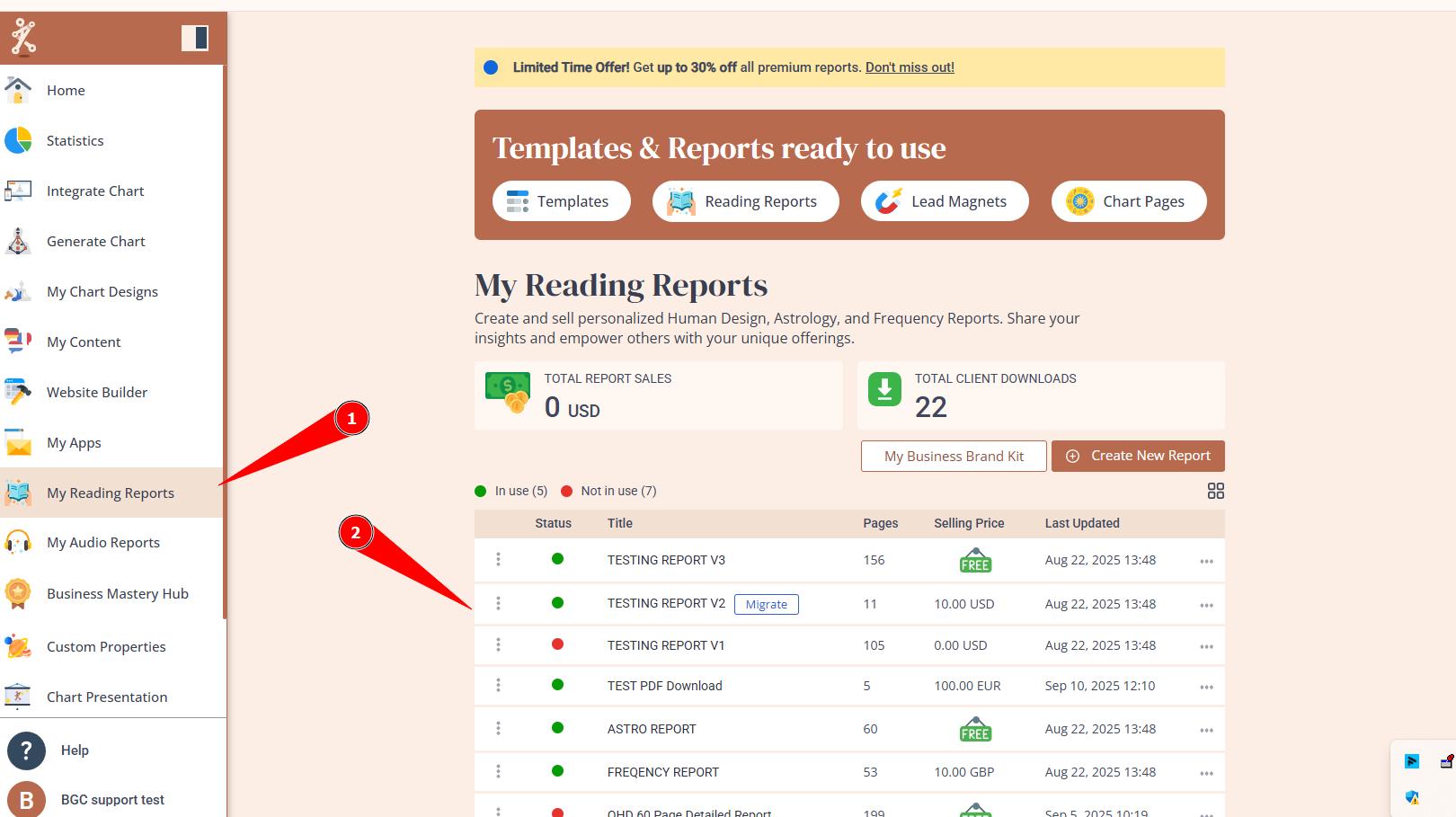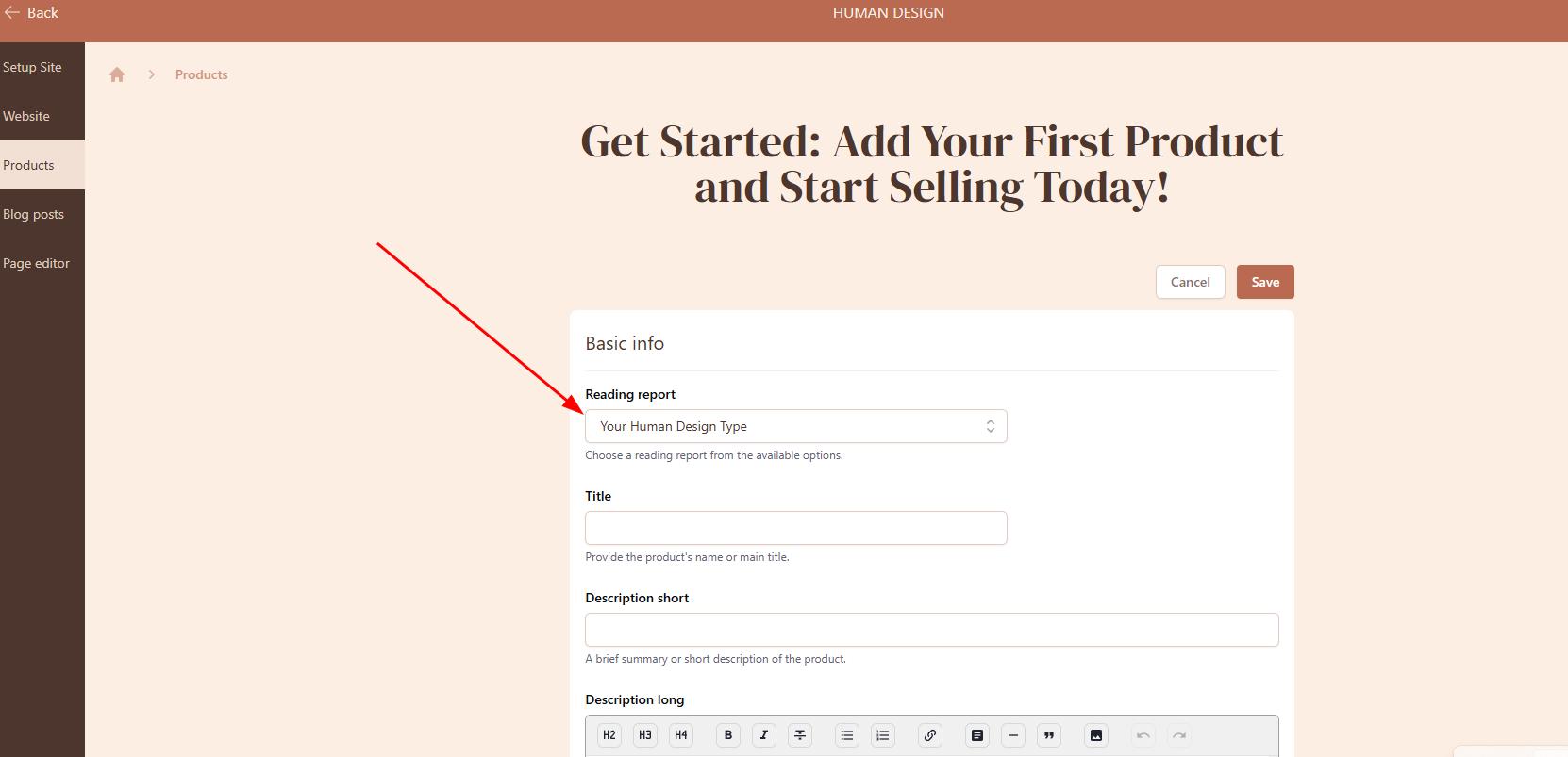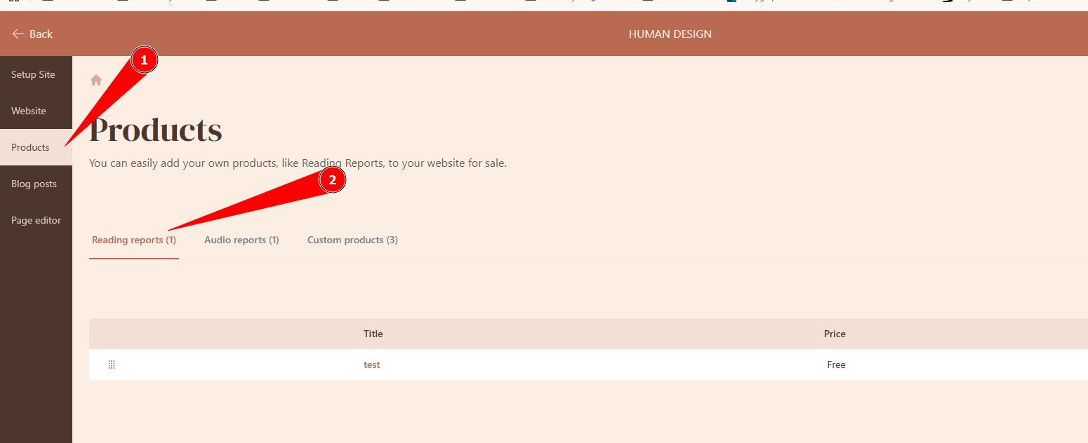 If you wish to link and sell reading reports at Website builder, please follow the steps below: