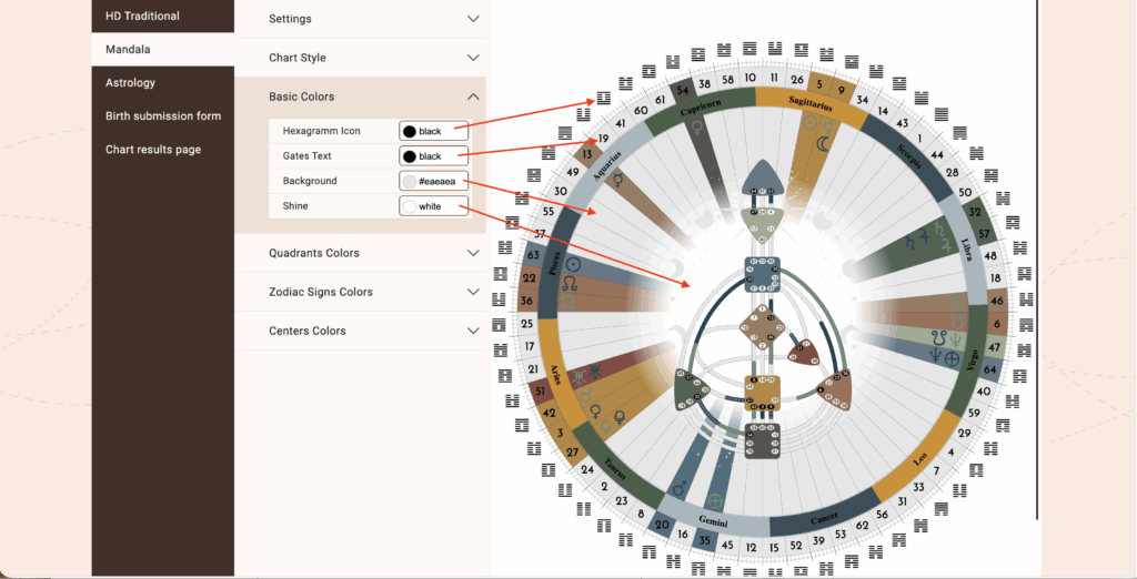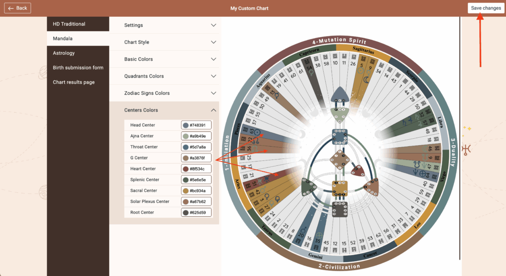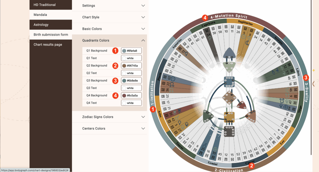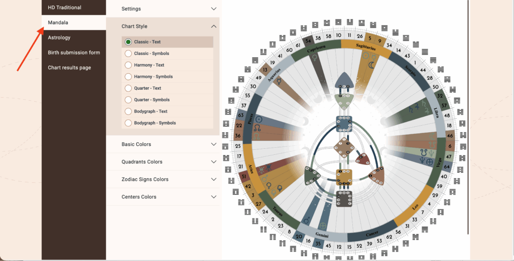 Open ‘Chart Designs‘ and select the chart that you want to edit the Mandala