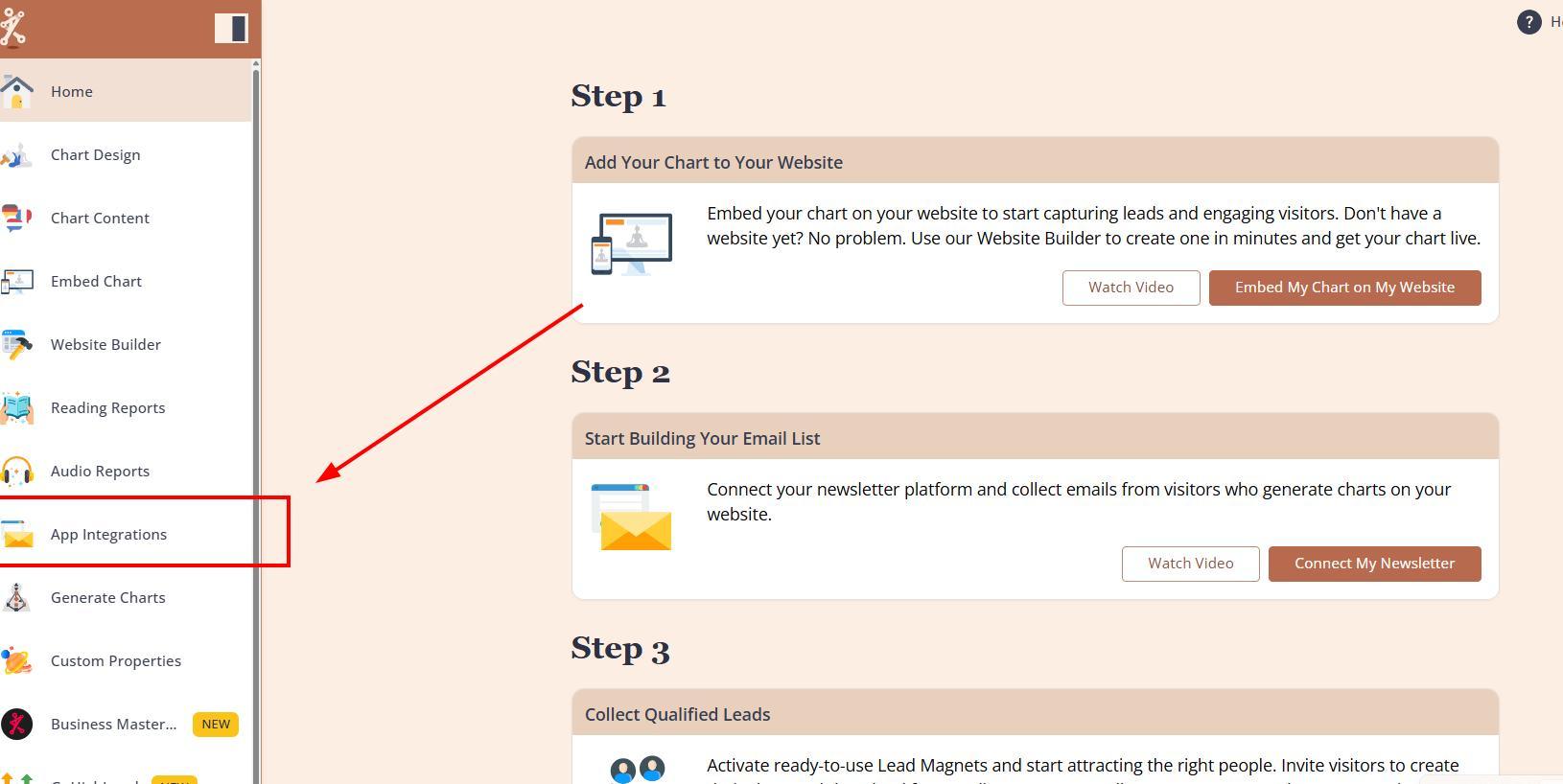Then, click on App Integrations at the left menu bar.