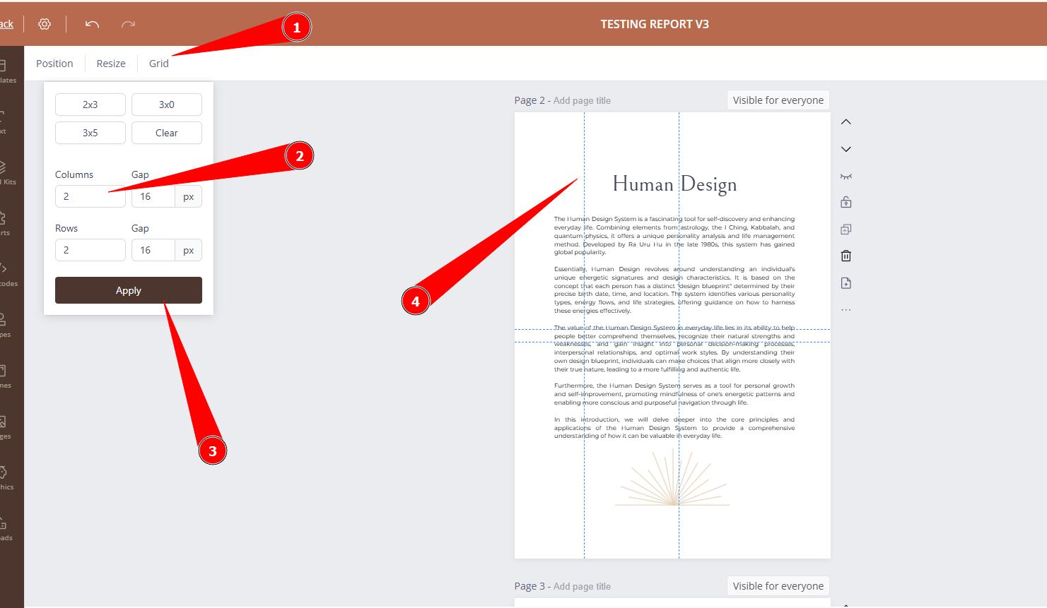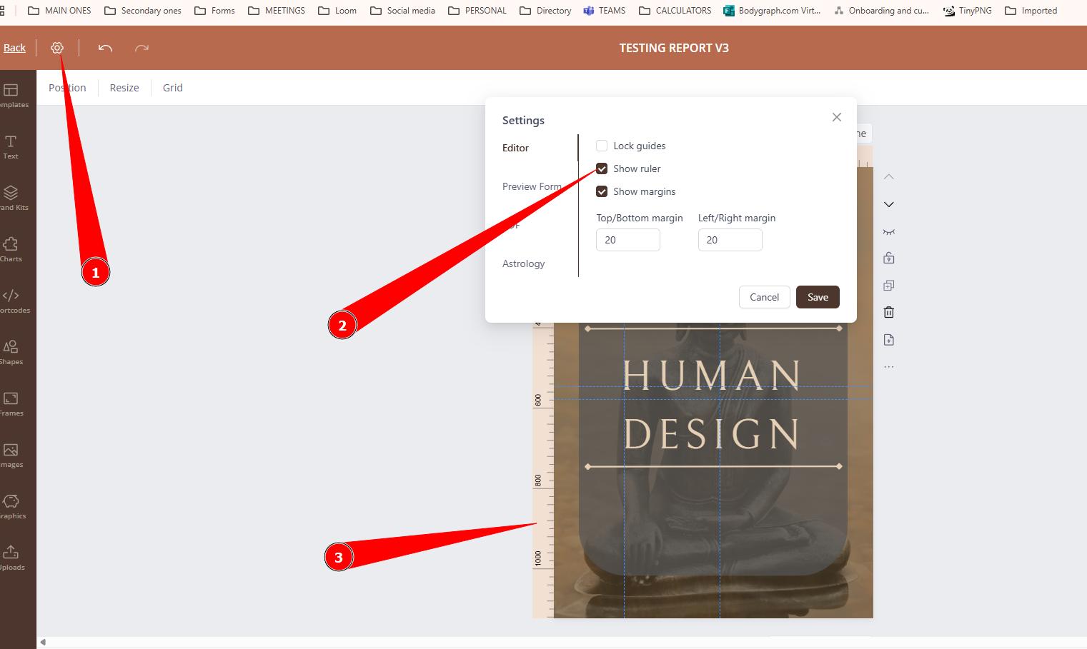 This image shows you how to add magnetic guides, a ruler or a grid to your report.