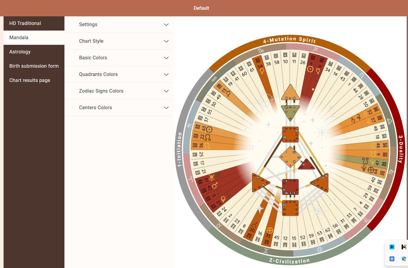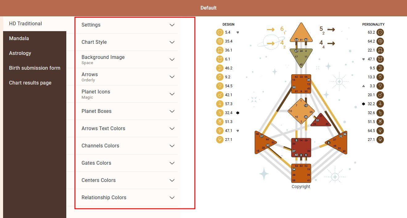 3. Astrology chart design and settings