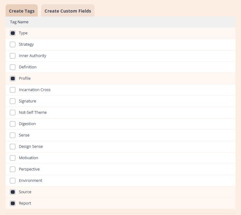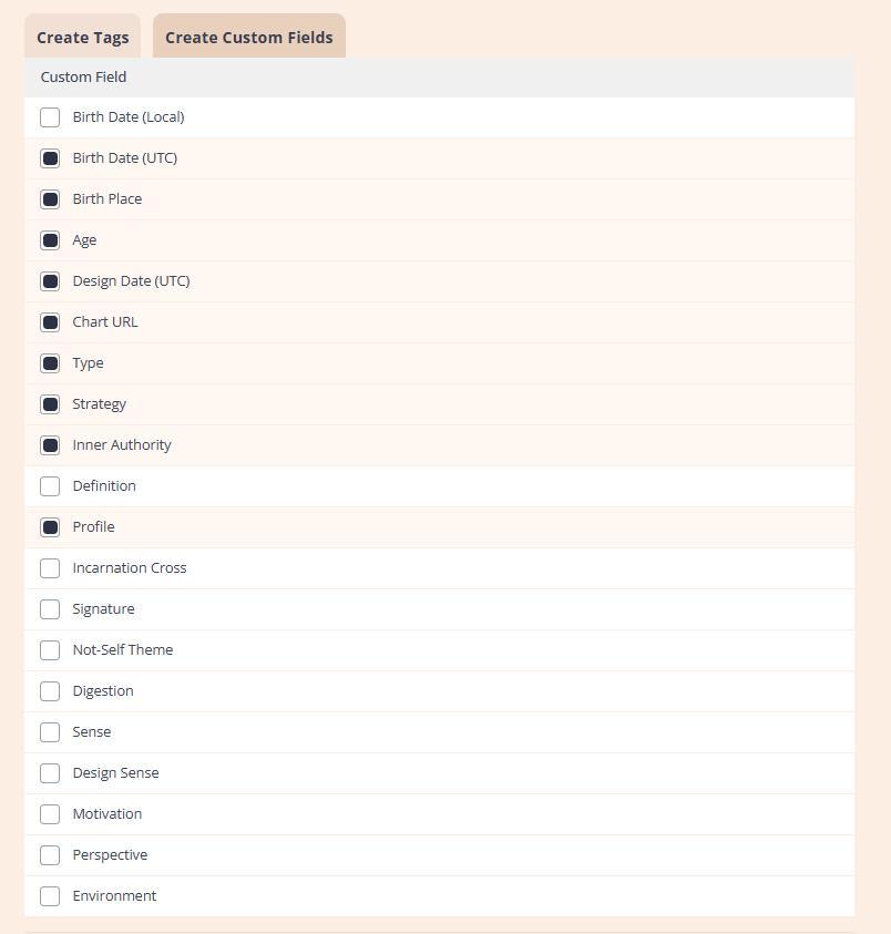 Custom fields or tags are selected