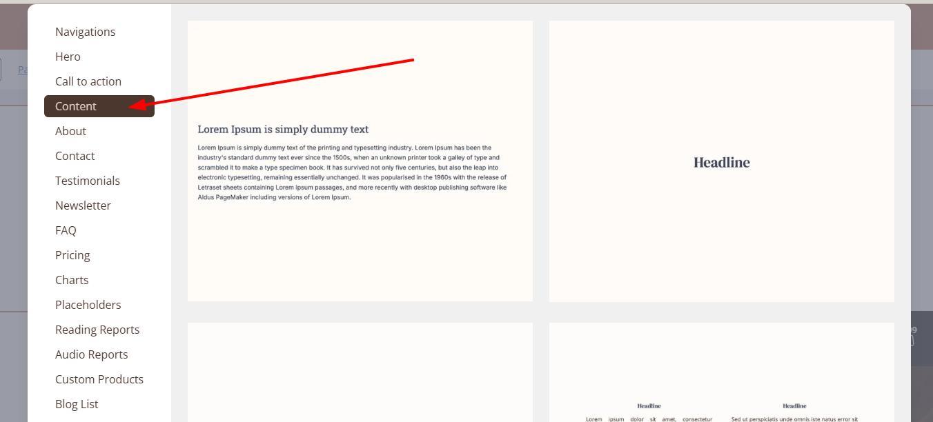 3. Navigate to to page where you want to add logo and click + sign to add section.