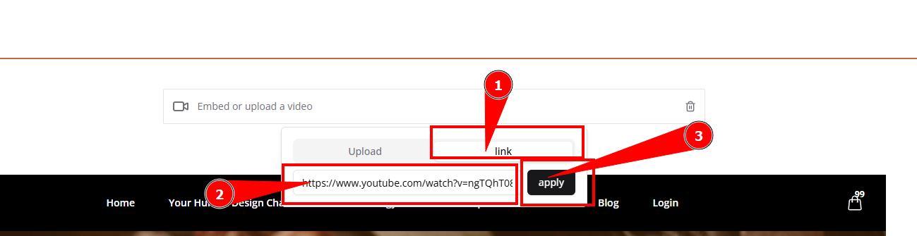 6. Please note Upload option is not supported. Therefore select Link option and provide link the video such as Youtube and click Apply.